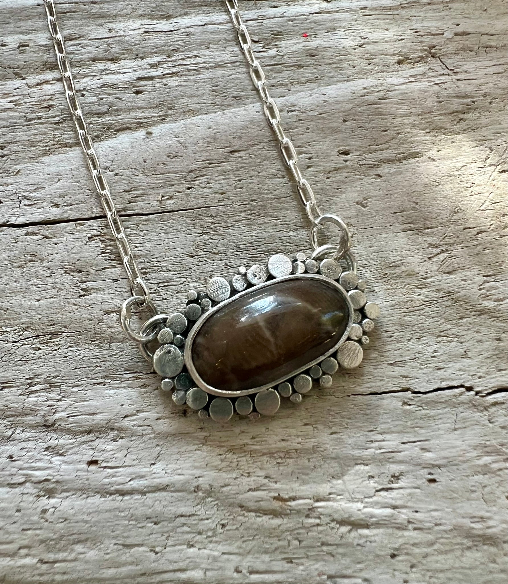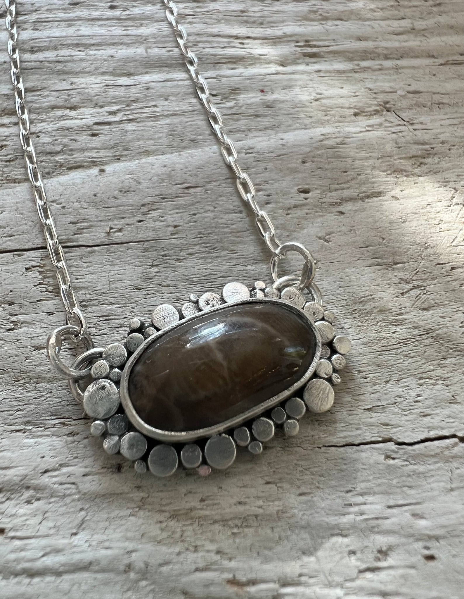 Necklace is on a adjustable sterling silver chain and is 18 inches long.